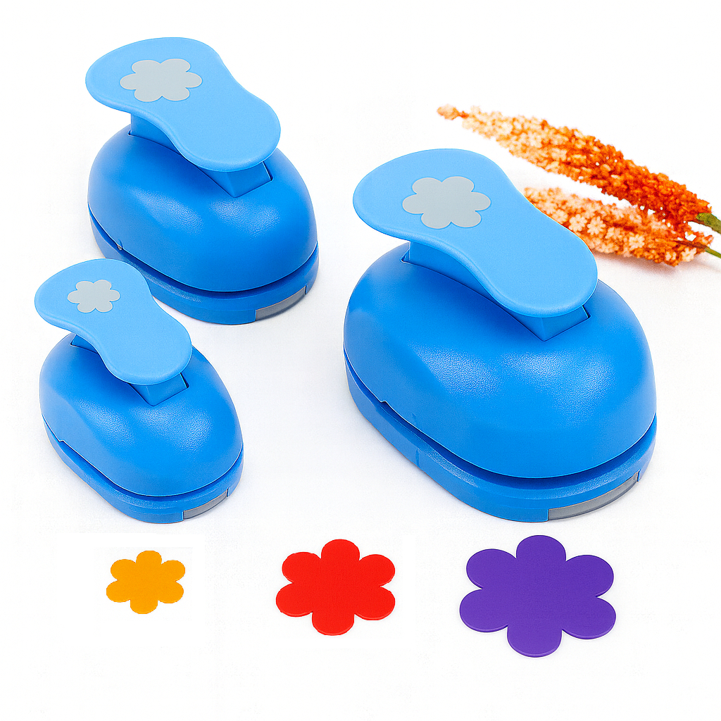Kit com 3 Cortador Furador Eva Flor 6 Pétalas - 16mm 25mm 50mm