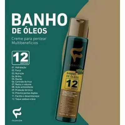 Leave In Sem Enxague Perfeito para Restaurar seu cabelo Perceba a diferença já nos primeiros dias de uso O Creme para Pentear Banho de Óleos 12 Benefícios Fashion é uma associação extraordinária de óleos preciosos obtidos a partir de nozes, sementes, ervas e frutos, que faz um produto com sensorial, performance e características únicas. Especialmente desenvolvido para conferir nutrição avançada, reposição da lubricidade essencial, resgatar a maciez e suavidade dos cabelos. São 12 Benefícios: - Hidratação - Força - Nutrição - Brilho - Maciez - Controle do Frizz - Reduz o Volume - Ação Antioxidante - Proteção Térmica - Previne Pontas Duplas - Facilita o Desembaraçar - Toque Sedoso e Leve 3 unidades