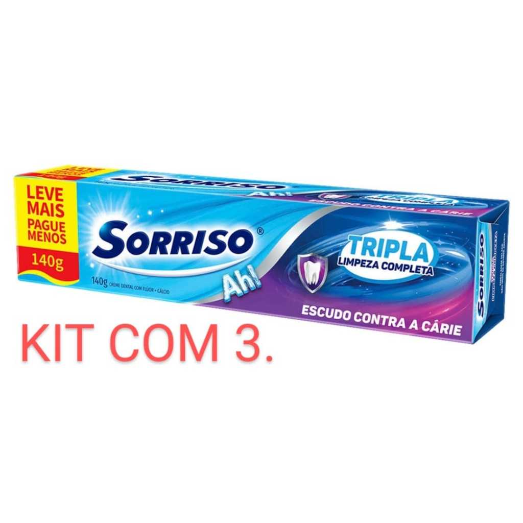 KIT COM 3 - Creme Dental Tripla Limpeza Completa Sorriso 140g.