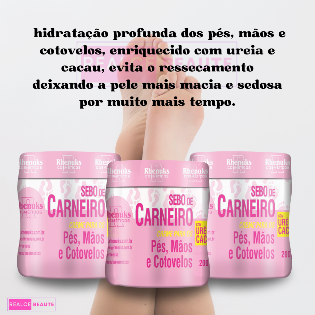 Nós da Realce_Beaute temos o compromisso de ajudar os nossos clientes a enxergar a beleza que já existe, vamos realçar sua beleza hoje? Confira essa linha que está na promoção e é maravilhosa, obrigado pela preferencia❤ Kit com 3 potes sebo de Carneiro 200ml Características Creme Evitar Rachaduras Dos Pés,ressecamento Da Pele,maciez,sensação De Pele Lisa,pés Hidratados Para Corpo Rhenuks Hidratante Sebo De Carneiro En Pote De 200ml/200g Ureia E Cacau Rhenuks Hidratante Sebo De Carneiro Creme Produtos Originais; Envio Rápido; Produtos bem embalados em caixas de envio.