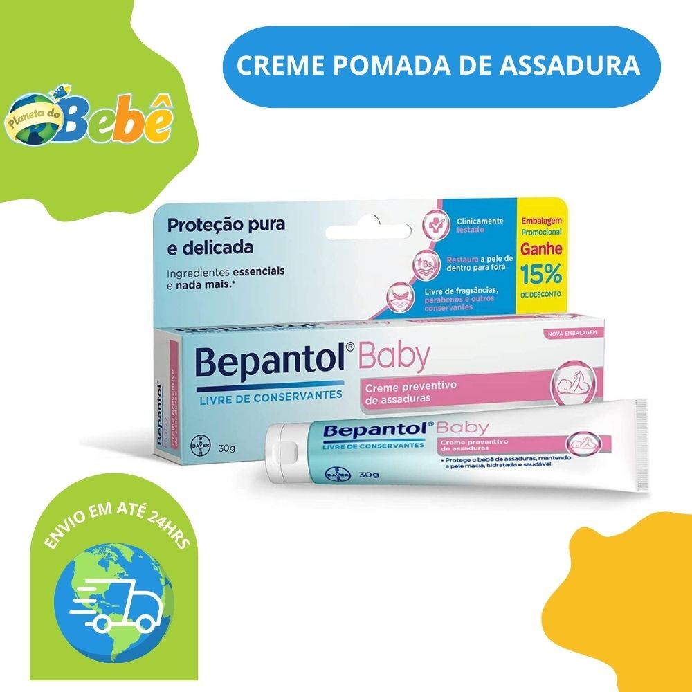 Kit com 3 Cremes Pomada de Assadura Proteção Delicada 30gr Cada – Bepantol Sempre pensando no bem-estar da mãe, do pai e, claro, dos bebês, a Bayer oferece Bepantol Baby, creme anti-assaduras que vai além dos cremes comuns. Seu uso destina-se a proteger a pele das assaduras, além de mantê-la resistente, macia e hidratada. Deve ser aplicado uma camada em toda a troca de fralda. Com sua fórmula única, livre de conservantes e agentes irritantes, forma uma barreira transparente que deixa a pele delicada do seu bebê respirar, mantendo-a sempre saudável. Possui Lanolina, que forma uma barreira protetora transparente no bumbum, e pró-vitamina B5, que penetra na pele do bebê deixando-a mais resistente contra assaduras. Além disso, Bepantol Baby é uma pomada livre de perfumes, corantes e parabenos que podem sensibilizar a pele delicada do bebê. Principais Características: - Idade Recomendada: 0m+ - Restaura a Pele de Dentro para Fora. - Mantém a Hidratação da Pele. - Proteção Pura e Delicada. - Clinicamente Testado. - Livre de Fragrâncias. - Livre de Agentes Irritantes. - Livre de Parabenos. - Livre de Conservantes. - Possui Vitamina B5. - Possui Lanolina. - Barreira Transparente. Especificações Técnicas: - Conteúdo da Embalagem: 3 Creme Pomada de Assadura Proteção Delicada 30gr Cada - Código do Fabricante: 85614444-3 - EAN: 7899403217855 - Marca: Bepantol * Imagens meramente ilustrativas, as cores e estampas podem variar de acordo com o lote do fabricante*
