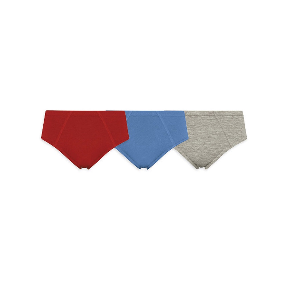 Características: Kit com 3 cuecas infantil. Modelo Slip. Com algodão penteado. Composição: Cor Cinza Mescla: 88% Algodão e 12% Poliéster. Demais Cores: 100% Algodão.