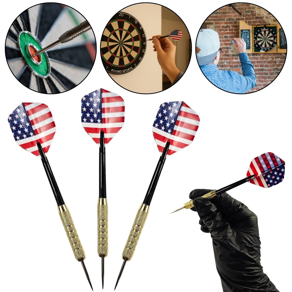 Kit com 3 Dardos Países Brasil, EUA, UK Profissionais Ponta de Aço Inox - Tiro ao Alvo
