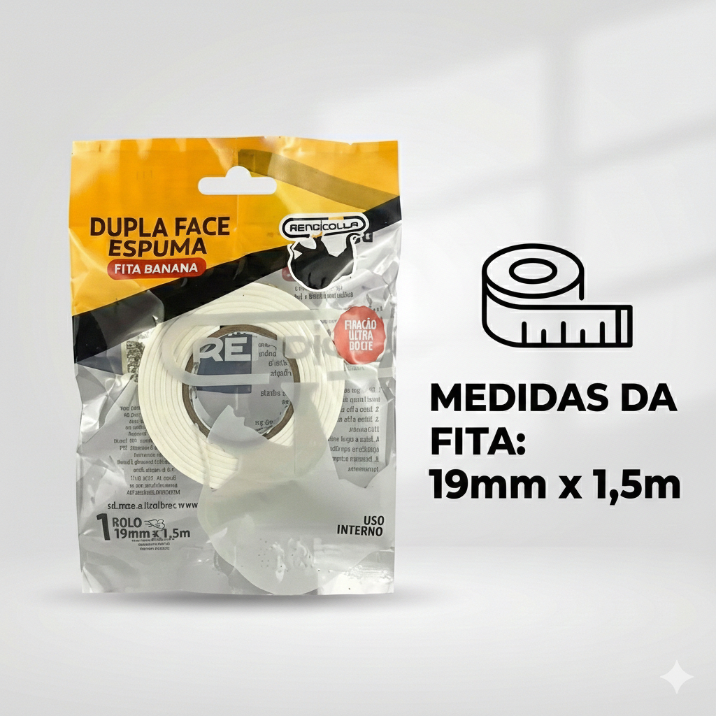 Kit com 3 Dupla Face Espuma - Fita Banana - 19mm x 1,5m