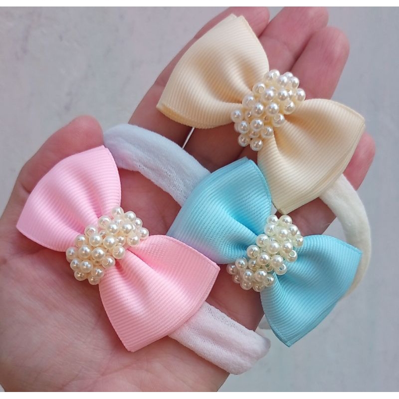kit com 3 faixas de cabelo para bebê RN lacinho pequeno bordado com pérolas