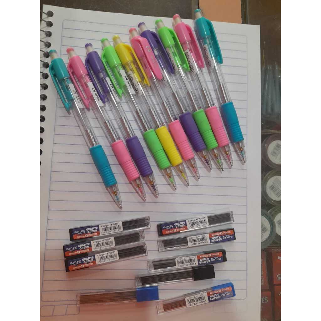 KIT COM 3 LAPISEIRAS 0.5 ou 0.7 + 3 ESTOJOS DE GRAFITES AS CORES SÃO ENVIADAS DE FORMA SORTIDA CONFORME DISPONIBILIDADE DENTRO DA OPÇÃO ESCOLHIDA.