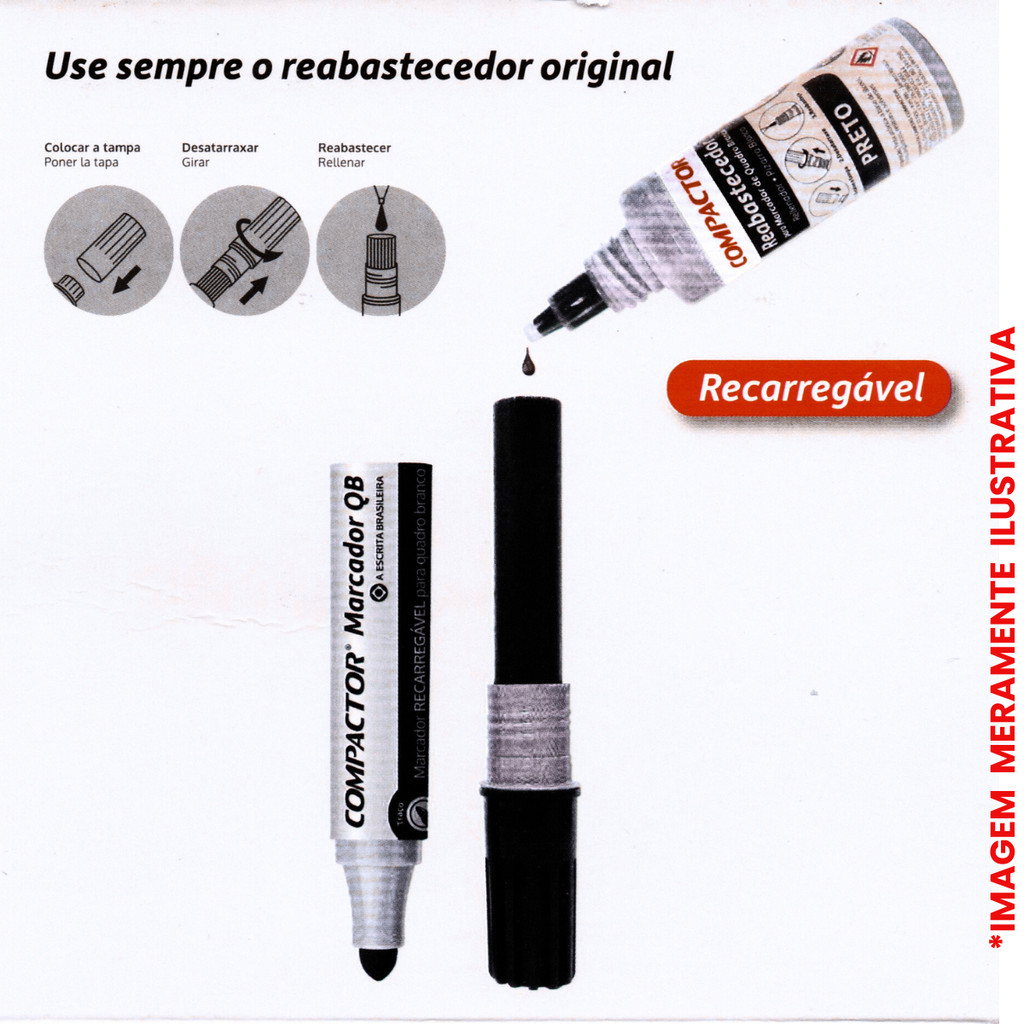 KIT C/ 3 MARCADORES PARA QUADRO BRANCO - COMPACTOR •Para pedidos feitos de segunda a sexta até às 12:00 horas (MEIO DIA) são despachados no mesmo dia!!! DESCRIÇÃO: • Marcador com Ponta de poliéster 6.0mm. • Marcador com Espessura de escrita 2.5mm. • Marcador com Tinta Especial. • Marcador Recarregável. • Marcador com Ponta Redonda. KIT INCLUSO: • 3 Pinceis Cada Um De Uma Cor