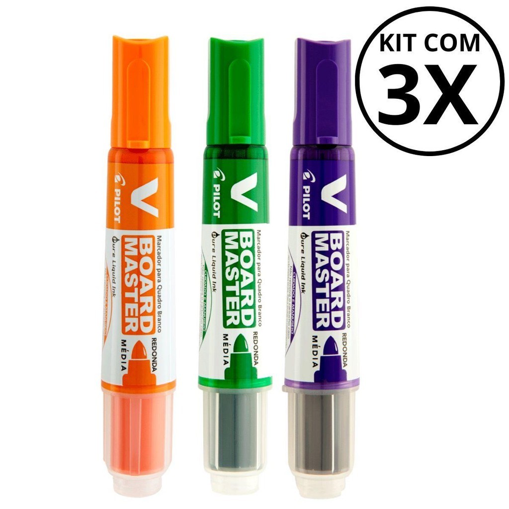Kit com 3 Marcadores Para Quadro Branco - PILOT/ PILOTO KITS:VERDE+VIOLETA+LARANJA