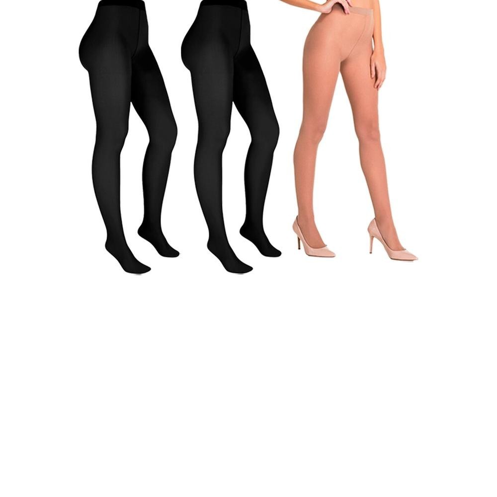 Características: Meia calça Modelo Europeu Efeito transparente fio 20 Confeccionada em microfibra, com toque suave e confortável Ideal para o dia a dia Cintura em tecido duplo com elástico canelado, que proporciona ajuste perfeito ao corpo Possui calcanhares e tornozelos sem costura que não irritam a pele Com demarcação de ponteira e de calça Cores: Preto: 2 preta e 1 bege Composição: 98% Poliamida e 02% Elastano