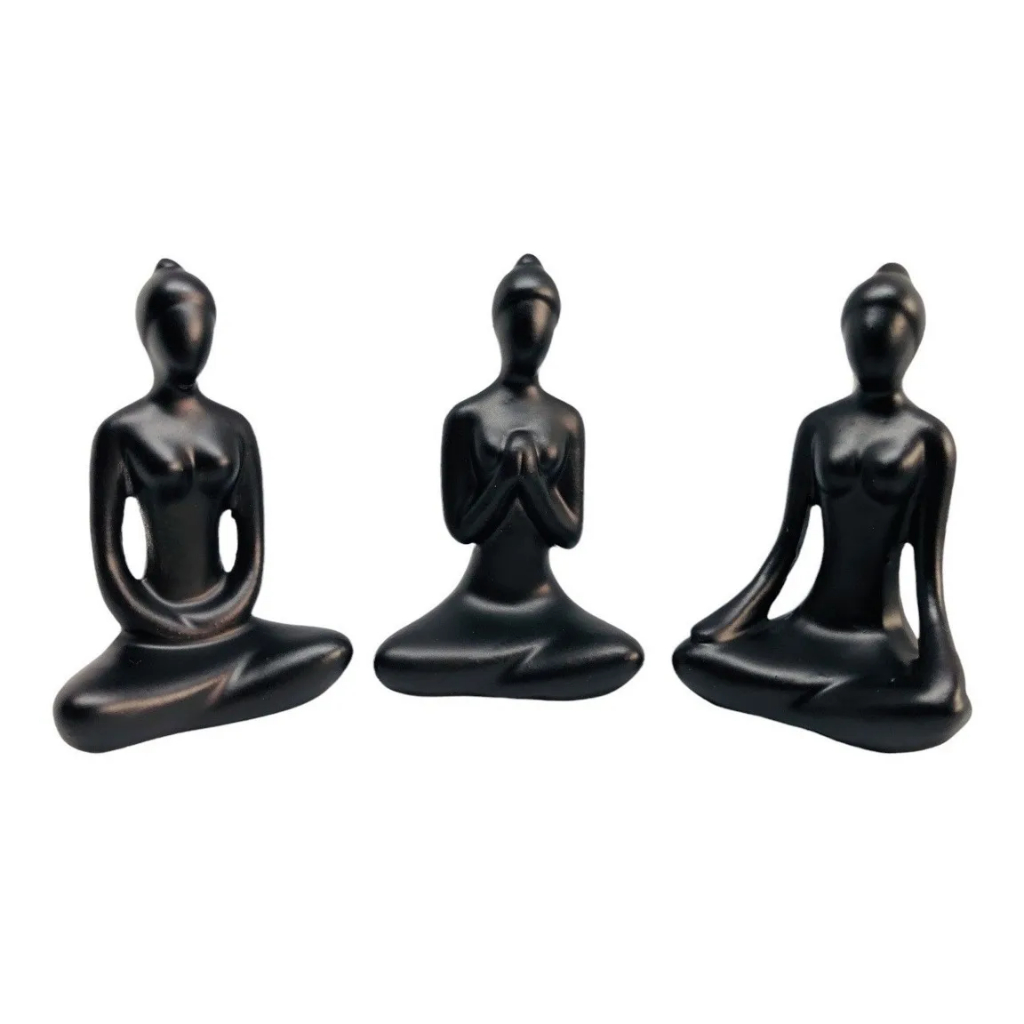 Kit Com 3 Mini Estátuas Enfeite Decorativo Meditação Posições De Yoga em Cerâmica 6cm Prata/Dourado/Rosé Gold/Preto
