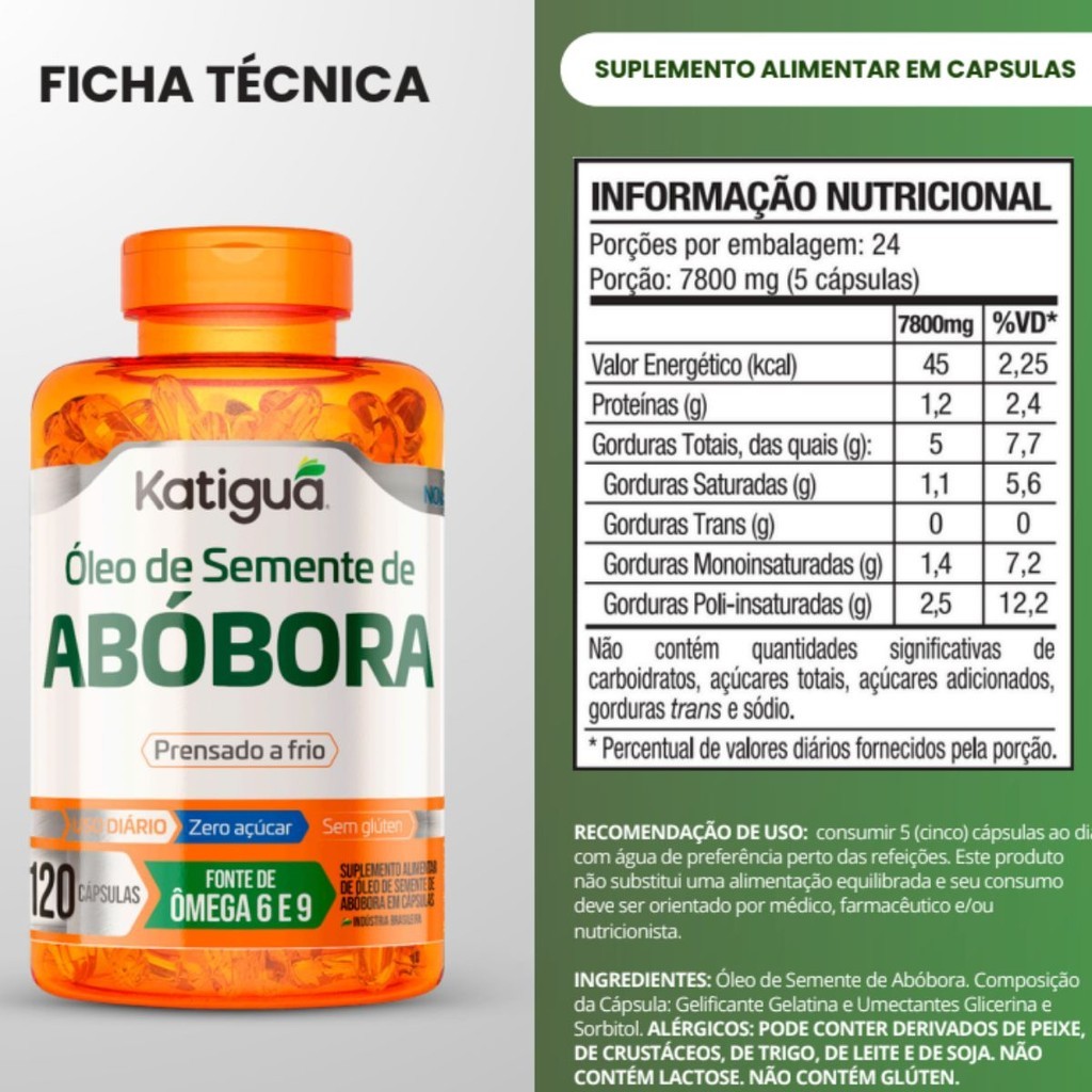 | Kit com 3 Óleo de Semente de Abóbora 1000mg Puro 100% Natural 120Cá... este produto | R$ 175,99 | 38% | 5.0/5 | — |