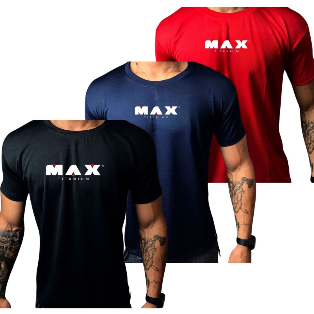 Kit com 3 ou 1 Camisas Dry Fit "Max Titanium" Ultra Fit Para Treino Academia e Esportes