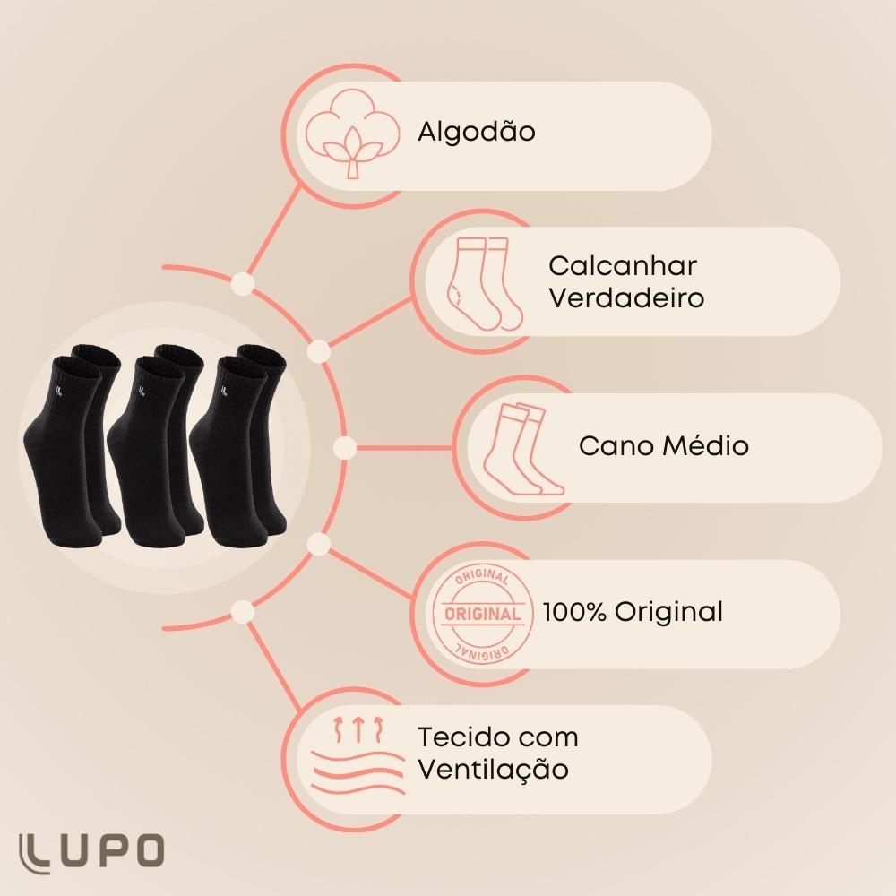 Kit Com 3 Pares Cano Médio Meias Lupo Original Algodão Unissex Masculino E Feminino