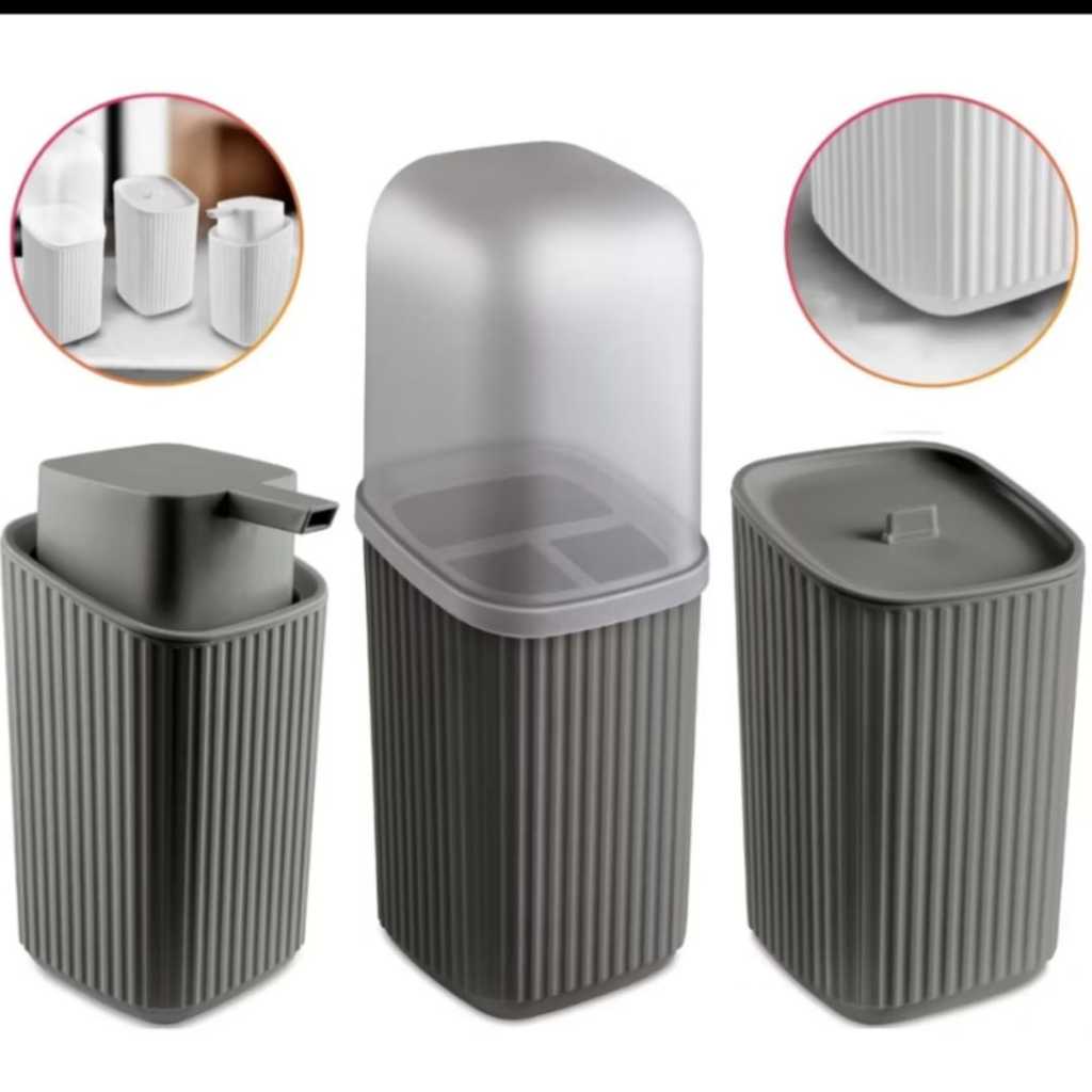 Kit Com 3 Pecas Com Porta Sabonete Liquido + Porta Algodão + Porta Escova Pastas Banheiro Organização Otima Qualidade