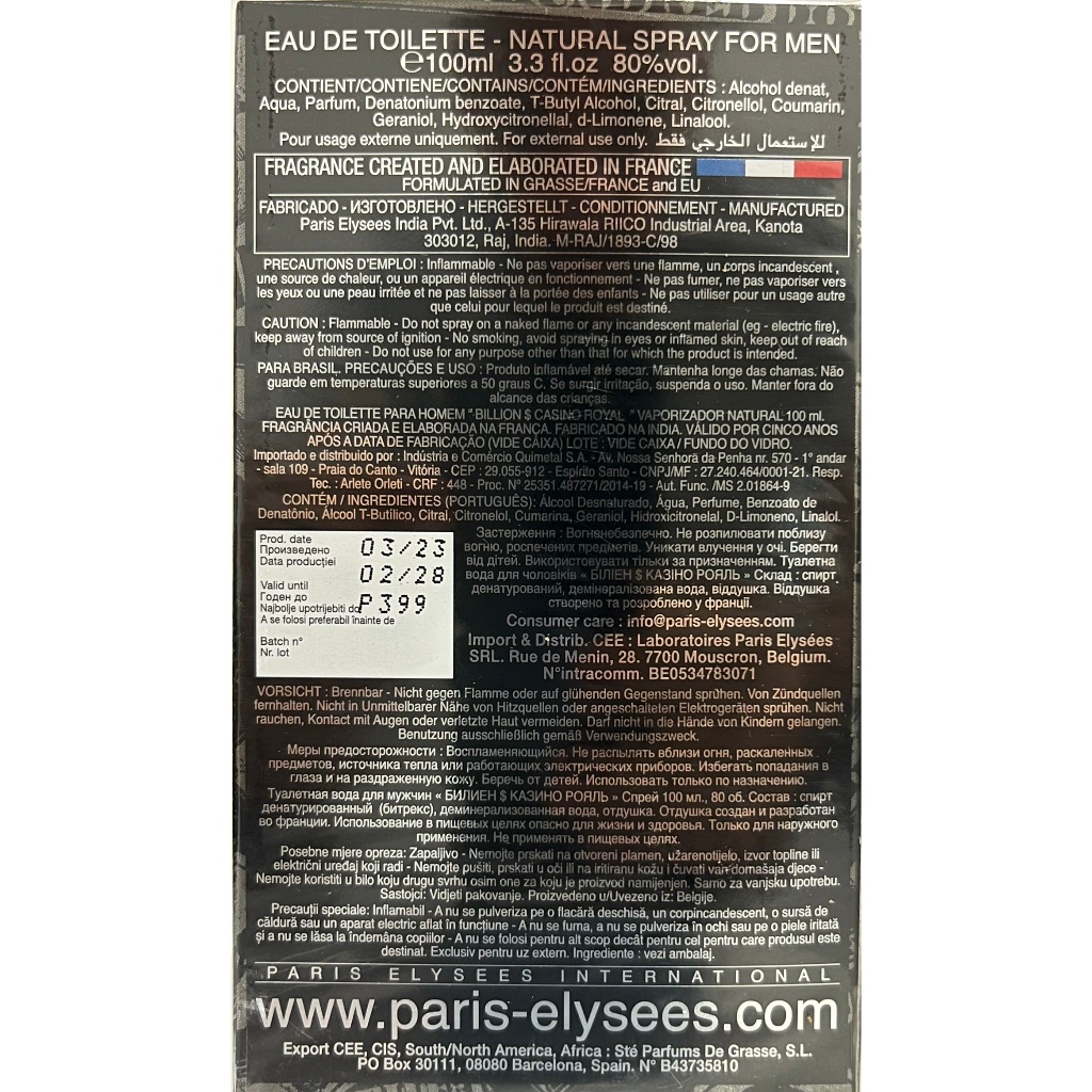 Kit com 3 Perfumes Billion Casino Royal 100ml - Paris Elysees