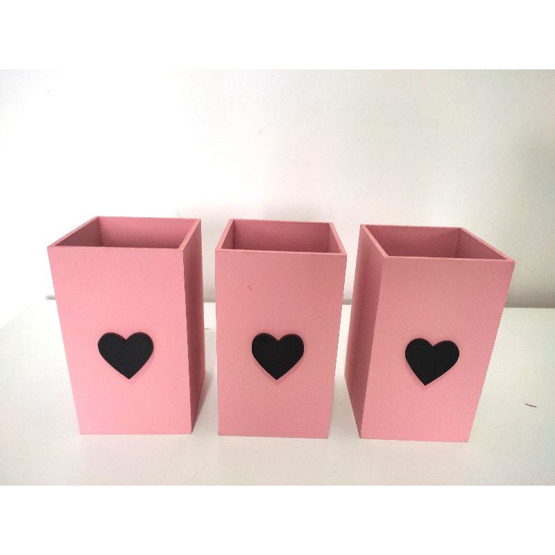 Kit com 3 Porta Lápis com coração - Organizador de Mesa e Escritório