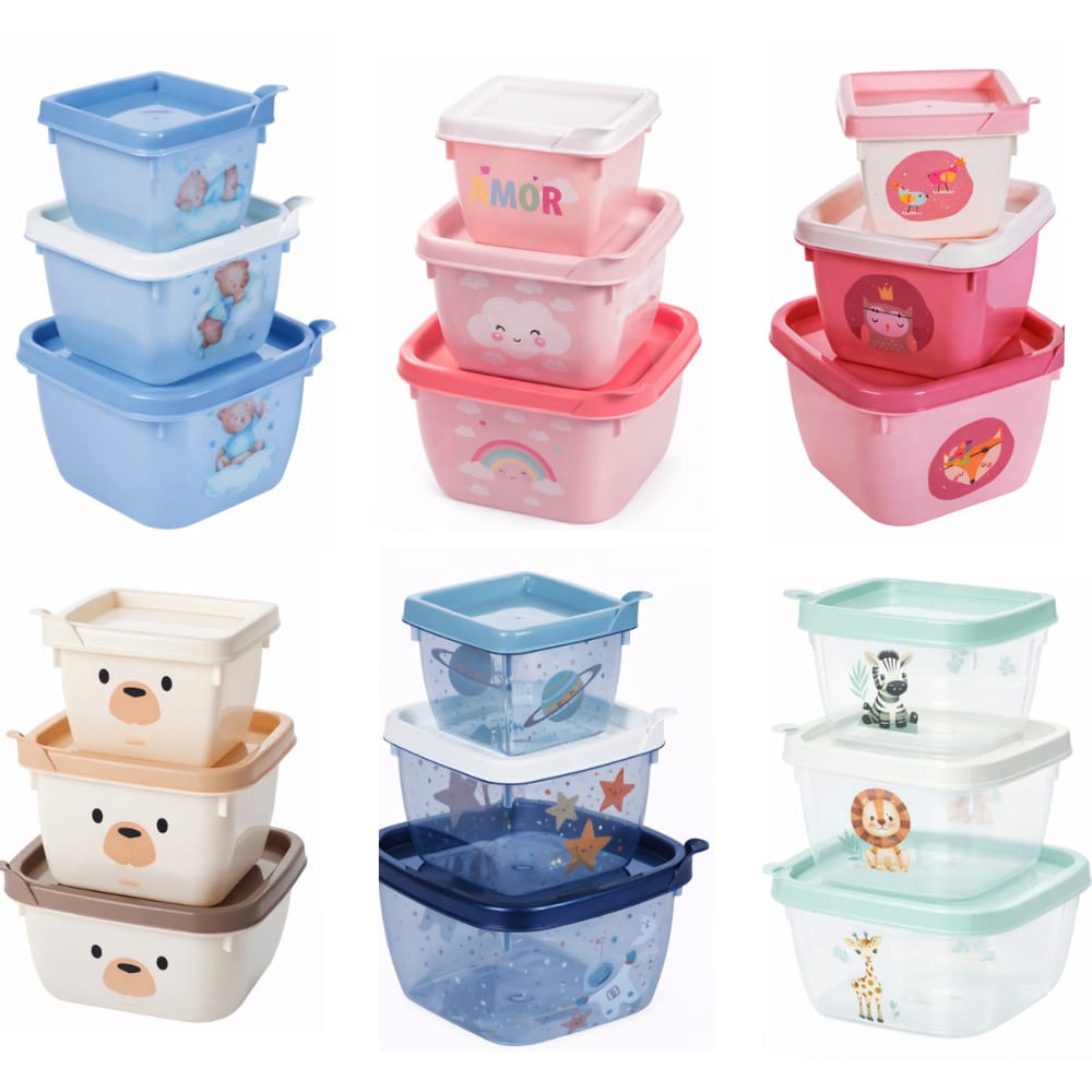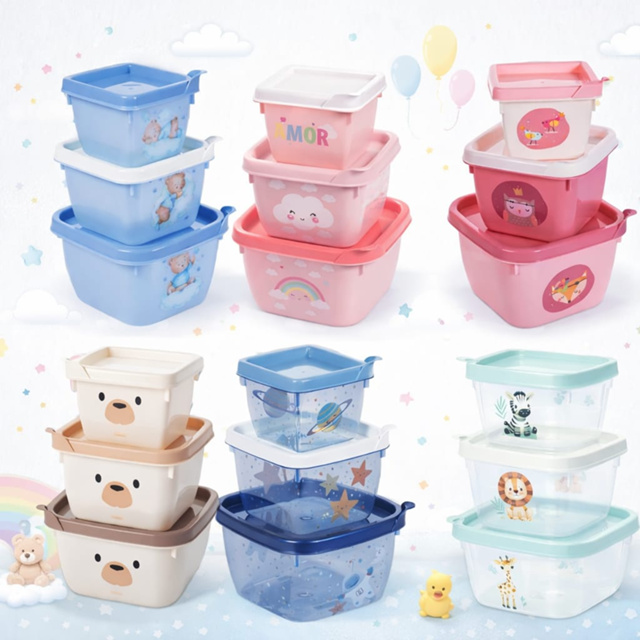Descrição do Produto: Kit com 3 potes organizadores em plástico resistente, ideais para armazenar alimentos, lanches e pequenos itens do dia a dia. Possuem tampa firme que ajuda a conservar os alimentos por mais tempo e evita vazamentos. São leves, práticos e empilháveis, facilitando a organização da geladeira, armário ou lancheira. Perfeitos para uso infantil ou familiar, unindo funcionalidade e um design delicado. Se quiser, posso deixar a descrição mais curta, mais persuasiva para Shopee ou com lista de benefícios.
