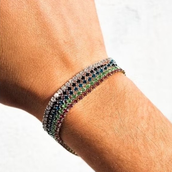 Kit com 3 Pulseiras Riviera Colorida | Folheada a prata 925 | Ajustável com acabamento Brilhante