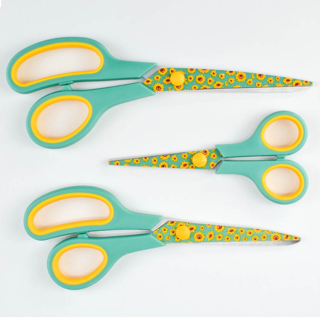 Kit Com 3 Tesouras Decoradas para Corte e Costura, Artesanato, Patchwork e Papelaria em Aço Inoxidável - GIRASSOL