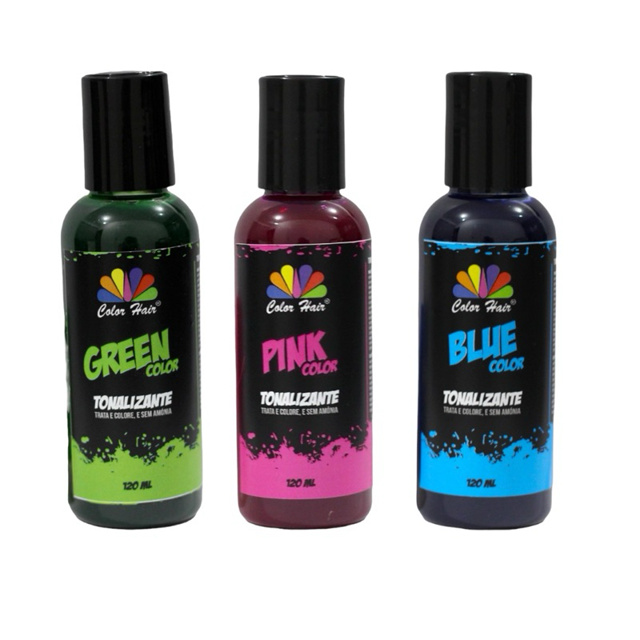 KIT COM 3 TONALIZANTES COLOR HAIR ( GREEN PINK BLUE)