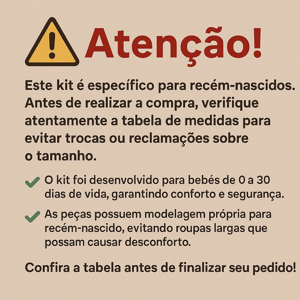 Kit 3 Toucas + 3 Luvas para Bebê Recém-Nascido – Cores Neutras (Branca, Vermelha e Marfim) | Suedine 100% Algodão Antialérgico Essencial para os primeiros dias de vida do seu bebê! Nosso kit com 3 toucas e 3 pares de luvas é ideal para proteger os pequenos de 0 a 3 dias, tanto na maternidade quanto em casa. Um item indispensável na bolsa da mamãe, seja para a saída do hospital ou para o uso diário nos primeiros dias de vida. ✅ Conforto e proteção garantidos: Confeccionado em suedine 100% algodão antialérgico, super macio e delicado, ideal para a pele sensível dos recém-nascidos. 🎨 Cores neutras e delicadas: Branca, vermelha e marfim – combinam com qualquer look do bebê. 🧼 Fácil de lavar, seca rápido e mantém a maciez mesmo após várias lavagens. ⚠️ ATENÇÃO: Antes de finalizar sua compra, verifique cuidadosamente a tabela de medidas e assista ao vídeo disponível no anúncio, que mostra o tamanho exato e o tecido do produto. Isso evita dúvidas e reclamações indevidas sobre tamanho ou material, garantindo uma experiência tranquila e satisfatória. 🚚 Envio Rápido! Seu pedido será postado o quanto antes com todo carinho e cuidado. 💬 Dúvidas? Estamos disponíveis no chat para te atender com agilidade e atenção.