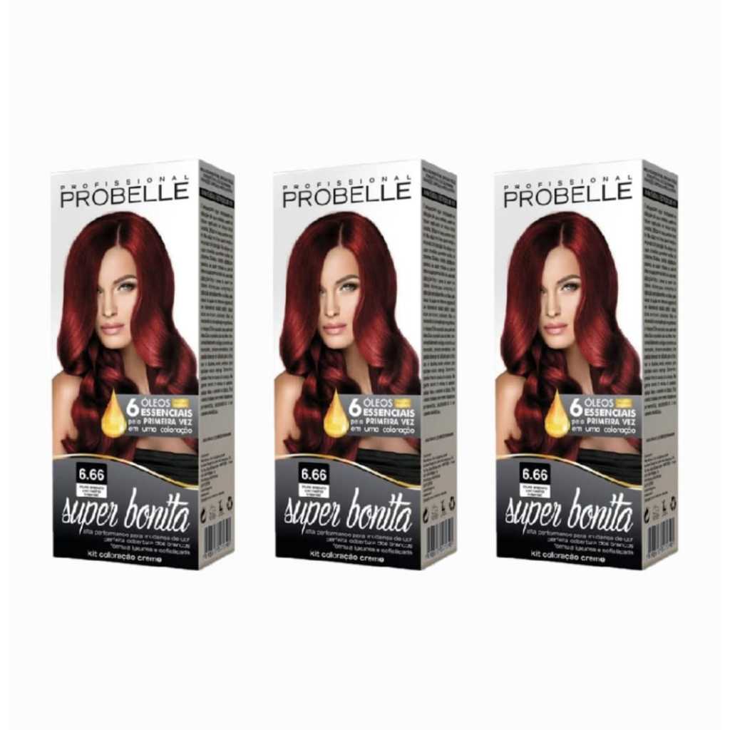 Kit Com 3 Unidades De Tintura Probelle Super Bonita 6.66 Louro Escuro Vermelho Intenso