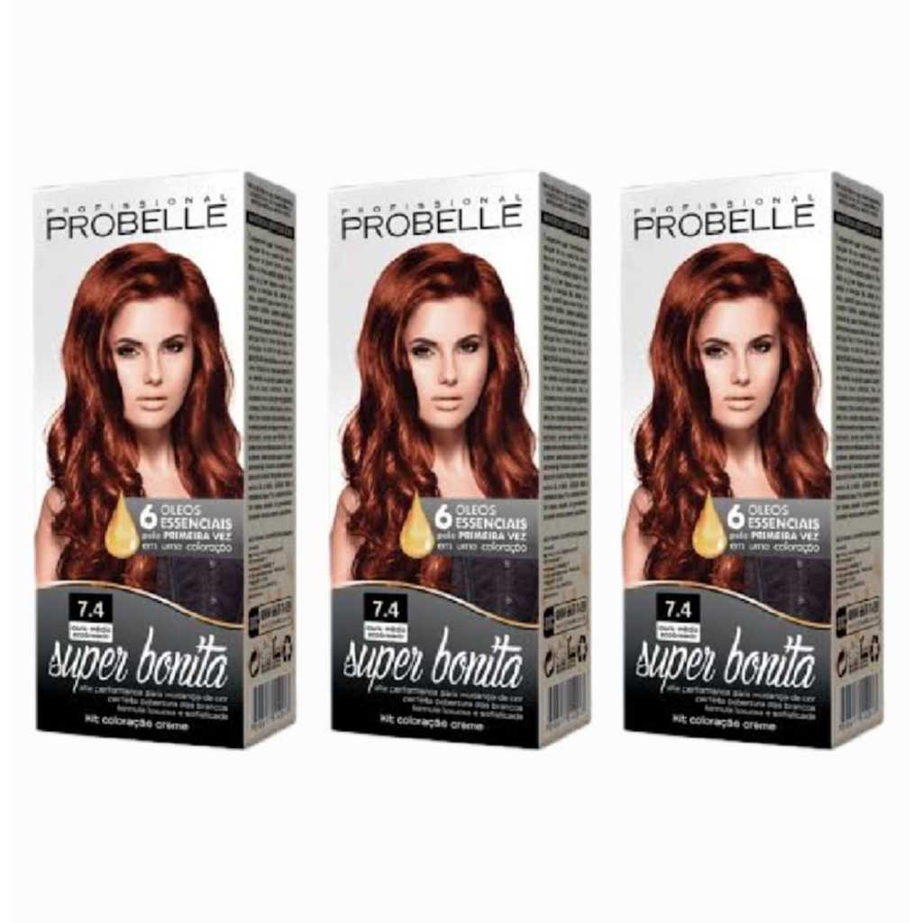 Kit Com 3 Unidades De Tintura Probelle Super Bonita 7.4 Louro Médio Acobreado