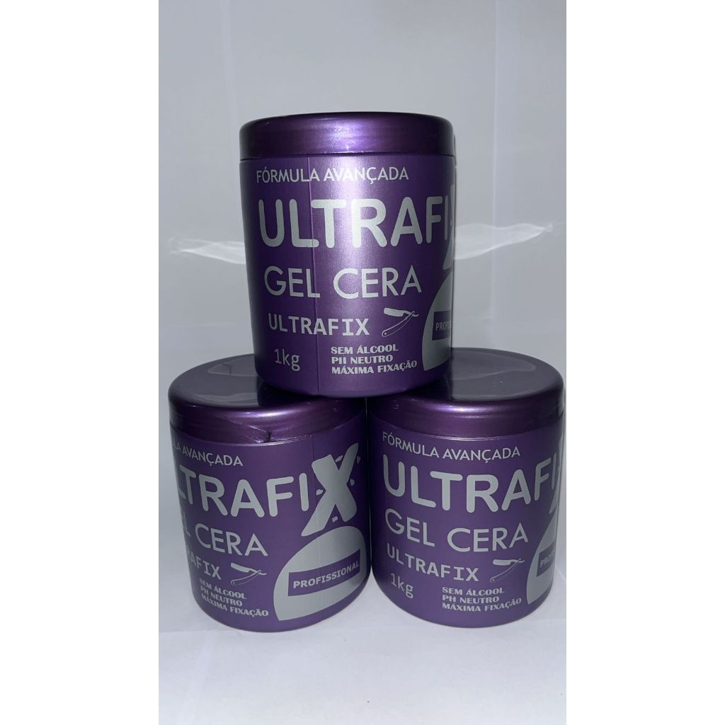 KIT COM 3 UNIDADES GEL CERA ULTRAFIX 1 KG SEM ÁLCOOL PH NEUTRO MÁXIMA FIXAÇÃO