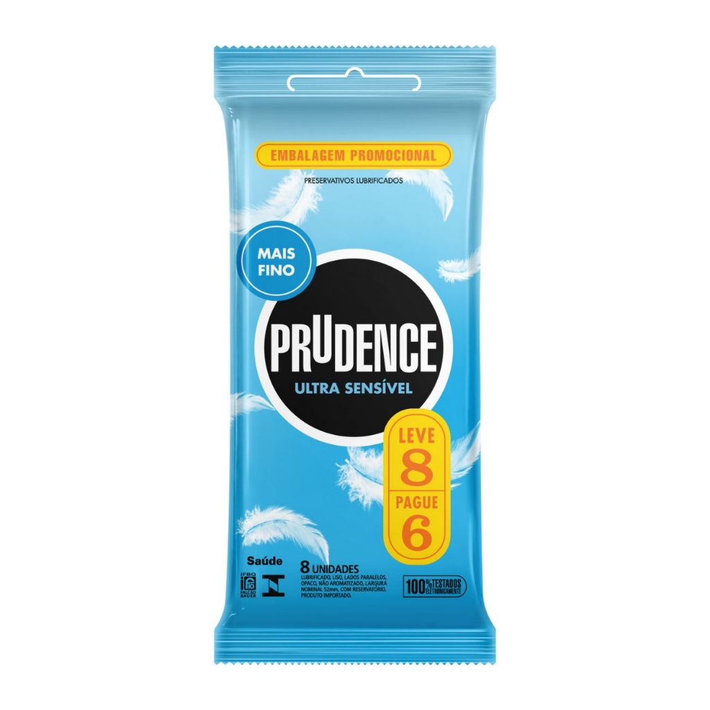 Kit contém: 3 embalagens do Preservativo Prudence Ultra Sensível Mais Fino Leve 8 Pague 6. Você já conhece os preservativos Ultra Sensível? Uma proteção quase imperceptível! Ele foi desenvolvido para proporcionar uma sensação mais natural, no ato da penetração, além do conforto.Você já conhece os preservativos Ultra Sensível? Uma proteção quase imperceptível! Ele foi desenvolvido para proporcionar uma sensação mais natural, no ato da penetração, além do conforto. Os Preservativos Prudence são lubrificados e apresentam material resistente. Modo de uso: O envelope que contém o preservativo deve ser aberto pelo picote no sentido vertical e somente na hora do uso. Não utilizar objetos cortantes, afiados ou pontiagudos para abrir a embalagem. Colocar o preservativo no órgão íntimo masculino assim que ocorrer a elevação, antes de qualquer contato íntimo. Para colocá-lo, leve-o até a extremidade do órgão íntimo masculino eleavado e aperte a ponta do preservativo de modo a evitar a retenção de ar em seu interior. Desenrolá-lo até a base do órgão íntimo masculino. Logo após a ejaculação, quando o órgão íntimo masculino ainda estiver ereto,retire-o da órgão íntimo feminino vagarosamente, segurando a borda do preservativo para que não haja vazamento de esperma. O produto deve ser utilizado uma única vez e deve ser descartado corretamente logo após o uso, não devendo ser jogado no vaso sanitário. Use um novo preservativo a cada relação íntima. Importante: A eficácia do preservativo está diretamente relacionada a sua correta utilização.Não deve entrar em contato com vaselina, óleo mineral ou outros produtos em base oleosa. Proteja este produto do calor, da umidade e da luz. Produto de uso único. Não fracionar. Produto recomendado para planejamento familiar e para a prevenção de doenças sexualmente transmissíveis.