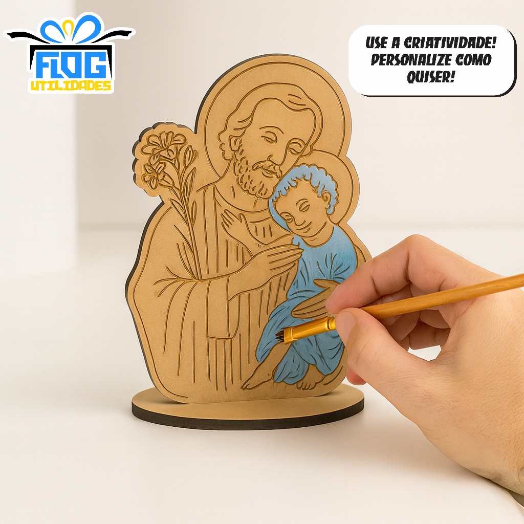 🙏 São José com Base – Detalhes Riscados a Laser | MDF Cru 2,8mm Leve para sua casa ou espaço de oração uma linda representação de São José, símbolo de fé, proteção e trabalho 🙏. Produzido em MDF cru 2,8 mm, com detalhes riscados a laser, este item une a simplicidade artesanal à beleza dos acabamentos precisos — ideal para quem valoriza peças religiosas feitas com cuidado e significado ✨. ✨ Características do Produto: 🪵 Material: MDF cru de alta qualidade, espessura 2,8 mm. 📏 Dimensões: 6 cm (comprimento) x 4 cm (largura) x 10 cm (altura). 🔥 Corte e gravação a laser, com acabamento fino e limpo. 📦 Enviado desmontado, garantindo frete mais econômico 🚚 e maior segurança durante o transporte. 🎨 Personalizável à mão: pinte, envernize ou decore com tintas, canetas, fitas e muito mais — crie um toque especial do seu jeito! 💡 Dicas de Personalização: Dê vida à sua peça de São José com tintas acrílicas, vernizes ou detalhes dourados ✨. Aproveite os riscos delicados feitos a laser para destacar contornos e criar uma arte única e cheia de fé 🎨. 🧼 Dicas de Conservação: Evite umidade e contato direto com a água 💧. Limpe com pano seco ou levemente umedecido. Guarde em local arejado, longe do sol intenso ☀️ e da poeira. 🛍️ Destaques: ✅ Produção própria com corte a laser de alta precisão. ✅ Ideal para lembranças religiosas, decorações e presentes de fé. ✅ Produto leve, resistente e com excelente custo-benefício. Mantenha a fé presente no seu lar com essa belíssima peça de São José com Base, perfeita para decorar, presentear ou personalizar com sua própria arte 🙌💖.