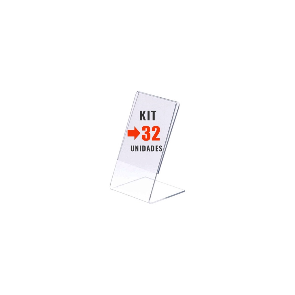 Kit com 32 display expositor acrílico porta preço etiqueta tamanho A8 medindo 8x5cm