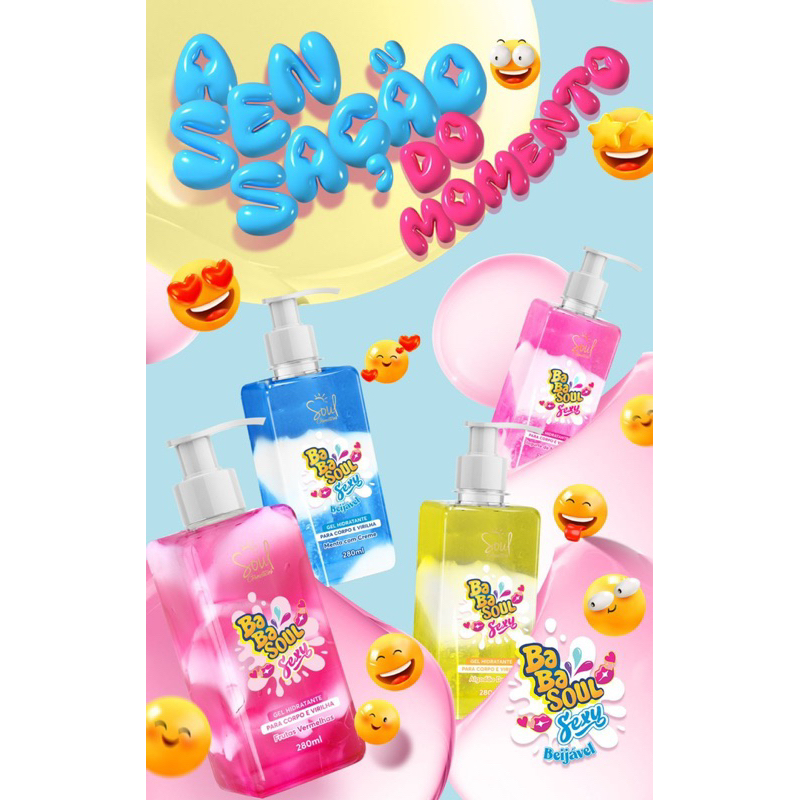 ENVIO IMEDIATO | PRODUTOS COM GARANTIA GEL HIDRATANTE CORPORAL BABASOUL SOUL Hidrante com um maravilhoso cheiro de Iorgut de Morango, beijável, hidrata a região íntima. Gel hidratante Virilha menta relaxante e sensual sem limites Modo de usar: Com a pele limpa e seca espalhe por todo o corpo especialmente na perna e virilha