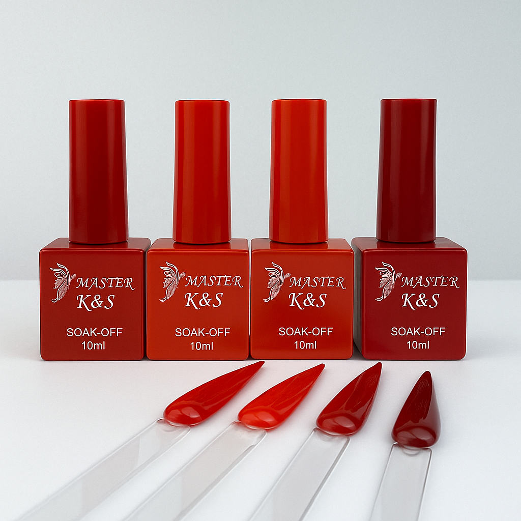 Kit Com 4/3/2 Esmaltes em Gel Tons Vermelhos K&S - 10ml | Alongamento Unhas Nails