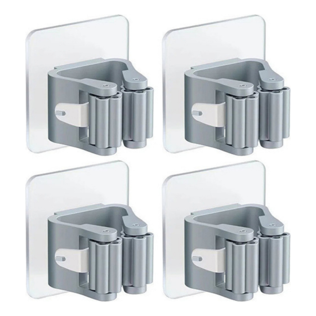 Kit Com 4, 8 Ou 12 Suportes Adesivo Gancho Para Vassoura Mop Rodo Organizador Sem Furar Parede
