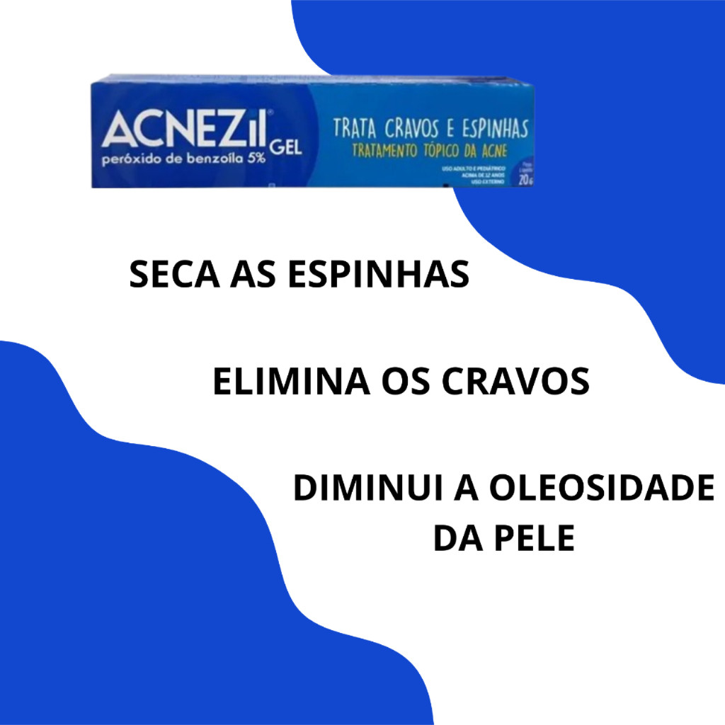 VALIDADE 06/2022 Clique no botão "Comprar agora" para garantir Acnezil Gel 5% 20g Trata Espinhas E Cravos pelo melhor preço! ======================================================================= Olá. Quero compartilhar com vocês minha experiência com um produto super barato e que realmente funciona para combater as espinhas, seu nome é Acnezil Gel. Eu sempre tive muitas espinhas, depois que comecei a usar o produto, em apenas uma semana, as espinhas secaram consideravelmente. Melhorou muito a oleosidade da pele, meu rosto está mais seco. Estou usando todas as noites antes de durmir. Lavo bem o rosto e aplico uma pequena camada na região com espinhas. Todas as manhãs eu passo um filtro solar sem óleo, assim posso ficar com o rosto exposto ao sol. Cada vez mais meu rosto tem melhorado. O melhor de tudo é o preço, custo beneficio!!! ======================================================================= Vale a pena testar. Fica a DICA. ======================================================================= Descrição do produto: Acnezil seca as espinhas, elimina os cravos, diminui a oleosidade da pele. Devido à sua ação renovadora, Acnezil elimina a acne em 2 a 6 semanas de tratamento. ======================================================================= Modo de usar: lave bem a região afetada. Com a ponta dos dedos aplique uma fina camada de Acnezil. Após a aplicação, lave bem as mãos e evite o contato do produto com roupas, pois pode descolorir as mesmas. Cuidados: Evite o sol durante o tratamento e use bloqueador solar não alcoólico durante o dia. Acnezil Gel – Trata espinhas e cravos ======================================================================= Especificações Apresentação Gel Conservação: Temperatura Ambiente ======================================================================= Fabricante: Cimed Marca: Cimed Linha: CRAVOS E ESPINHAS Nome: ACNEZIL Formato: Gel É um produto hipoalergênico: Não Com proteção solar: Não É livre de parabenos: Sim É testado dermatologicamente: Sim Funções: Anti-Acne Unidades por pacote: 1 Quantidade: 1 Tipo de unidade: g Modelo: Acnezil Gel 5% =======================================================================
