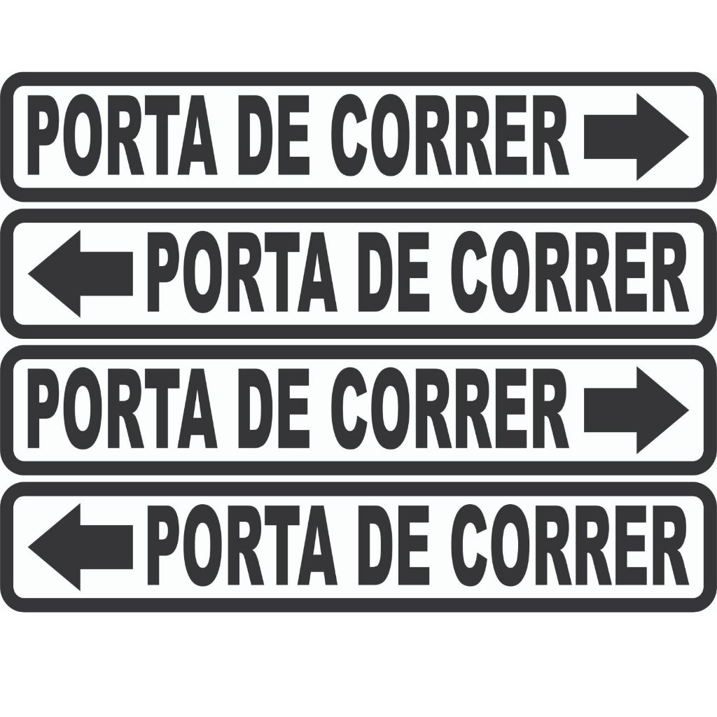 Kit com 4 Adesivos Porta de correr Sinalização para porta impresso em fundo branco