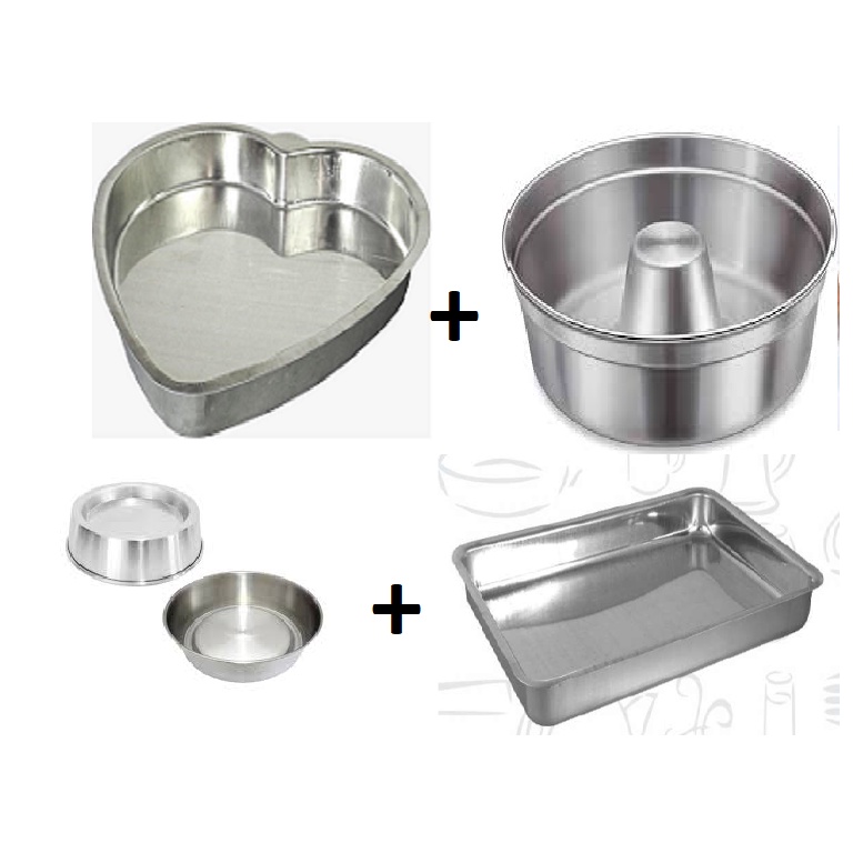 ESSE KIT VEM COM 4 ASSADEIRAS TODAS EM ALUMÍNIO IF35 *CERTIFICADAS INMETRO *NÃO EMPENA NO FORNO Dimensões: 1° Forma Coração com 20cm de diâmetro e 4cm de altura 2° Forma Bolo ou Pudim com 20cm de diâmetro e 8cm de altura 3° Forma Ballerine com 20cm de diâmetro e 6cm de altura 4° Forma Retangular com 28cm de comprimento, 19cm de largura e 5cm de altura. ***NOS COMERCIALIZAMOS QUALIDADE***