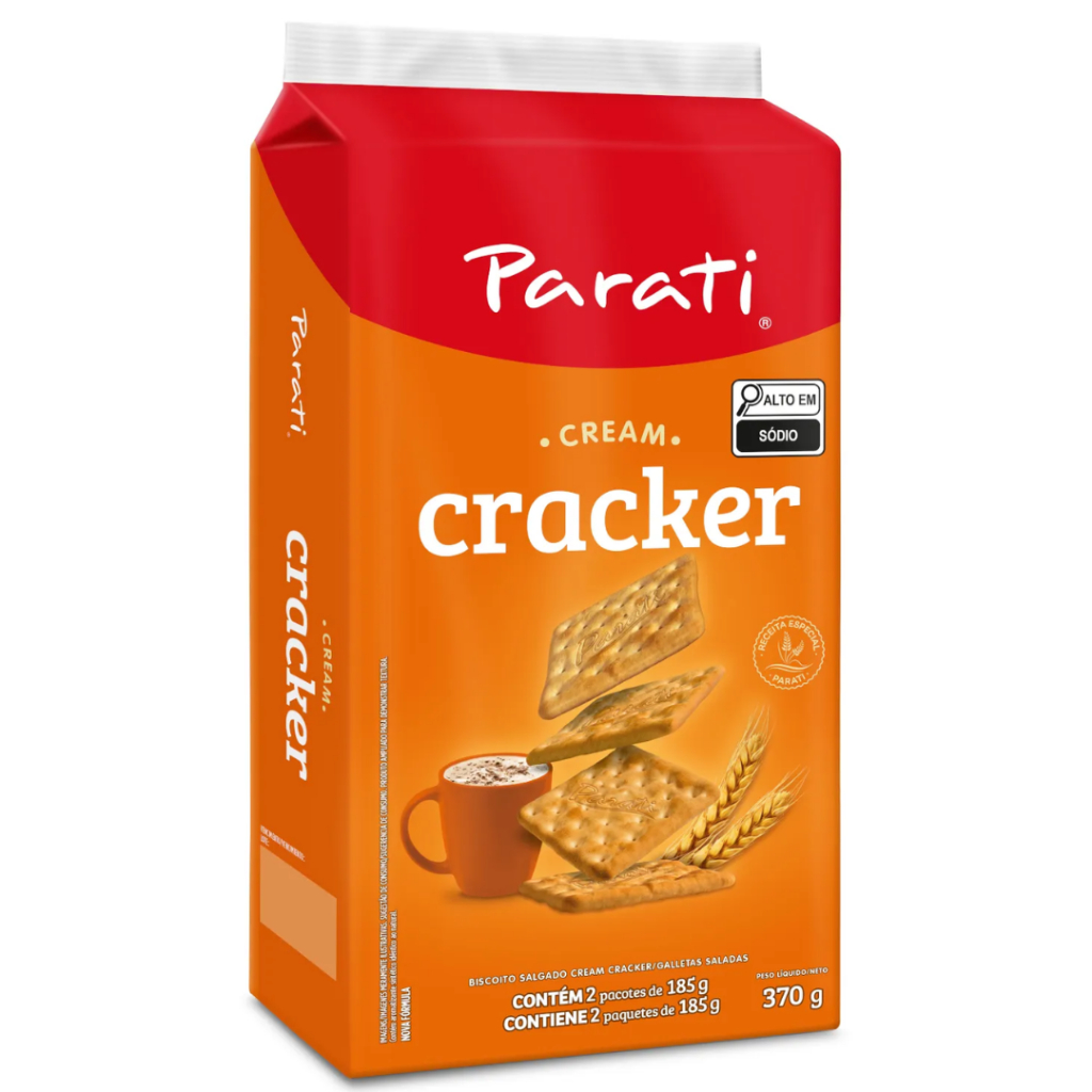 Biscoito Salgado Parati 370g - Água e Sal, Cream Cracker Biscoitos disponíveis: Água e Sal Cream Cracker Selecione o sabor de sua preferência na hora da compra, caso escolha o misto, estaremos enviando a quantidade dividida igualmente nos sabores disponíveis. Qualquer dúvida é só nos mandar uma mensagem no chat. Caso queira receber de outra forma, avisar no chat após a compra! ÁGUA E SAL: - Um biscoito tão simples quanto saboroso! Um clássico Parati perfeito para todas as ocasiões. O Água e Sal da Parati é muito crocante, ótima opção para substituir o pão nas refeições. CREAM CRACKER: - Textura crocante e salgadinha, o biscoito Cream Cracker Parati é um clássico que não pode faltar na sua despensa Bateu aquela fome? Passe um requeijão ou uma geleia no Cream Cracker Parati e saboreie essa delícia! INGREDIENTES: ÁGUA E SAL: Farinha de trigo enriquecida com ferro e ácido fólico, gordura vegetal, sal, açúcar invertido, açúcar, cloreto de potássio, amido, fermentos químicos: bicarbonato de amônio e bicarbonato de sódio, emulsificante lecitina de soja. CREAM CRACKER: Farinha de trigo enriquecida com ferro e ácido fólico, gordura vegetal, sal, açúcar invertido, açúcar, cloreto de potássio, amido, fermentos químicos: bicarbonato de amônio e bicarbonato de sódio, emulsificante lecitina de soja, aromatizante. CONTÉM GLÚTEN. ALÉRGICOS: CONTÉM DERIVADOS DE TRIGO E SOJA. PODE CONTER OVOS, LEITE, AVEIA, AVELÃS, CASTANHA-DO-PARÁ, CASTANHA-DE-CAJU, CEVADA E CENTEIO.