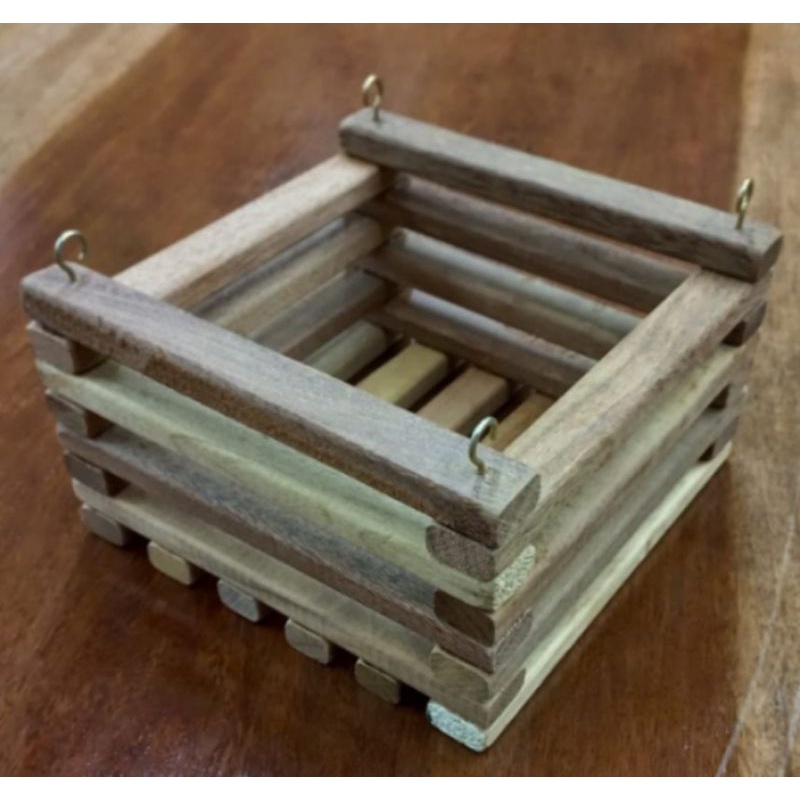 Kit com 4 Cachepots de Madeira, feitos em madeira natural sem verniz medidas 20 cm x 20 cm x 12 cm Comp. x Larg. x Alt. Medidas externas sem verniz pode ser usado para orquídeas. Já vem com as escapulas para pendurar, são feitos com madeiras sortidas, por isso existem variações de tonalidades entre as peças.
