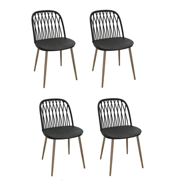 Com design diferenciado em curvas e detalhes vazados, a cadeira Ariane traz modernidade e conforto ao seu espaço. Conjunto com 4 Cadeiras com assento e encosto em polipropileno, sem braços. Possui base fixa em aço com aplicação de adesivo na cor madeira. Estilo: Moderno Peso (kg): 4 Dobrável: Não Garantia: 03 Meses Altura (cm): 83 Giratória: Não Acabamento: Polipropileno Largura (cm): 46 Possui Rodízio: Não Suporta Até (kg): 120 Possui Espaldar: Sim Profundidade (cm): 44 Tipo de Assento: Fixo Tipo de Encosto: Fixo Escala de Brilho: Semi-Fosco Material da Base: Aço Material dos Pés: Aço Origem do Produto: Importado Ambiente Principal: Sala de Jantar Material Principal: Polipropileno Quantidade de Itens: 4 Estrutura do Assento: Polipropileno Estrutura do Encosto: Polipropileno Material da Estrutura: Aço Acabamento da Estrutura: Adesivo Revestimento do Assento: Polipropileno Revestimento do Encosto: Polipropileno Possui Apoio para Braços: Não Possui Apoio para os Pés: Não Altura do Assento até o Chão: 43.5 Informações Complementares (Novo): Conjunto com 4 Cadeiras com assento e encosto em polipropileno, sem braços. Possui base fixa em aço com aplicação de adesivo na cor madeira. Possui Assento/Encosto Estofados: Não Marca: Versi Cor do Produto: Preto Itens Inclusos: 4 Cadeiras, Kit Ferragens e Manual de Montagem Cor Predominante: Preto Linha ou Coleção: Ariane Quantidade do Produto: 4