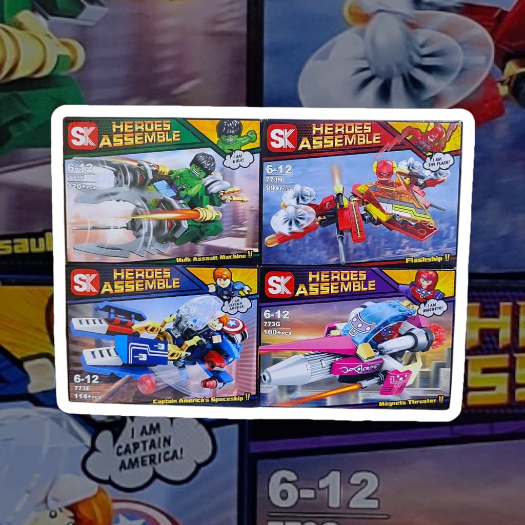 Kit com 4 Caixas de Blocos de Montar Heróis com Carrinho