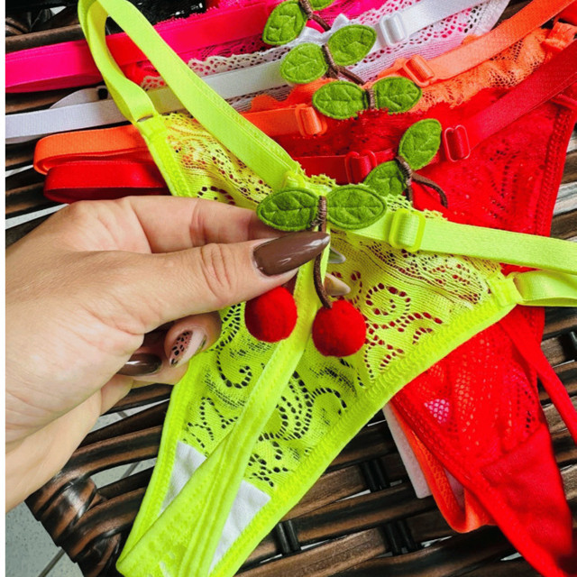 Kit com 4 Calcinha Sexy Rendada com Fio Dental e Cereja 3D – Neon, Divertida e Tamanho Único com Regulagem