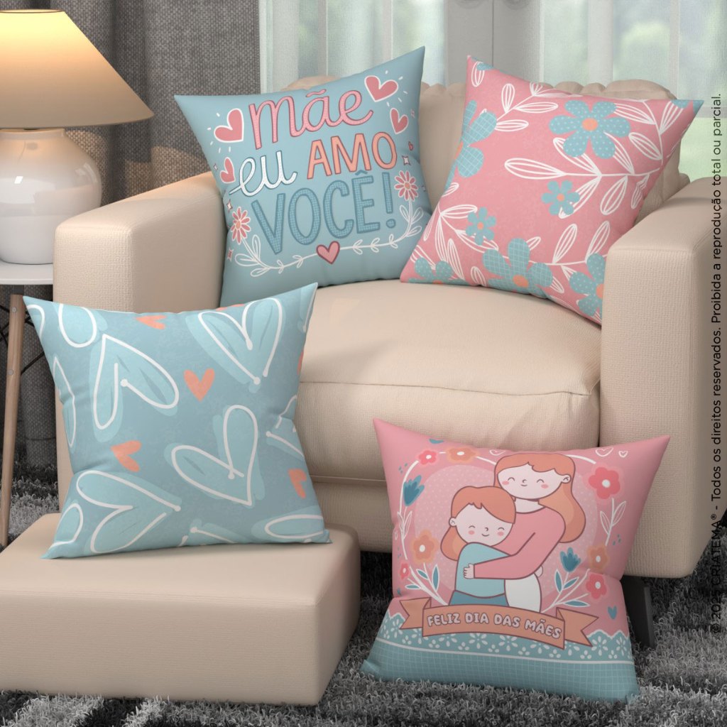 Kit Com 4 Capas de Almofada Decorativas Dia das Mães Estampadas 45x45cm Sublimado