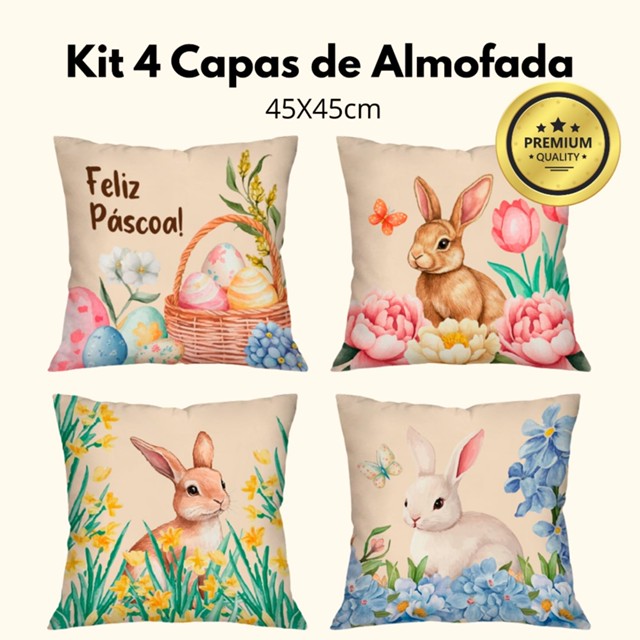 | Kit com 4 Capas de Almofada Decorativas Pascoais 45x45cm Páscoa Coe... este produto | R$ 28,00 | 65% | 4.9/5 | 223 |