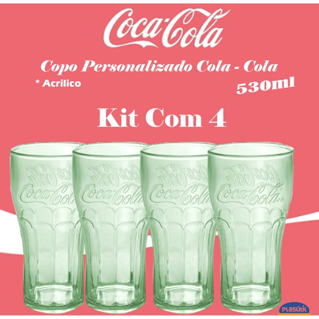 | Kit Com 4 Copos Personalizados Coca - Cola - 580ml / Acrílico = Ver... este produto | R$ 49,99 | — | 5.0/5 | 1 |