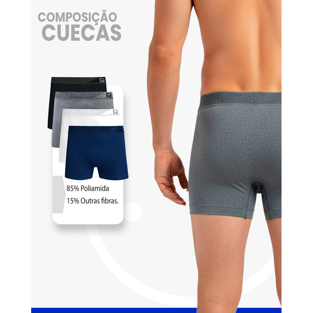 Kit com 4 Cuecas Boxer Adulto Poliamida Sem Costura Box Masculino Confortável Original DelRio