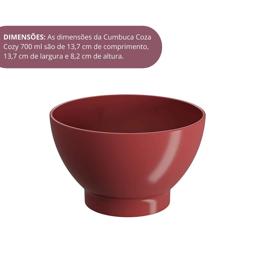 Para alegrar seu dia-a-dia, a cumbuca Cozy serve os mais diversos alimentos em porções individuais de 750ml. Pode ser o cereal do café da manhã, a sopa ou caldinho da janta, sobremesas ou sorvete e até petiscos e molhinhos para a happy hour. Para facilitar a sua vida, o recipiente pode ir ao micro-ondas e à máquina de lavar. Material: Polipropileno Linha: Cozy Medidas Aproximadas: 13,7 x 13,7 x 8,2 cm Capacidade: 750ml Características: - Marca: Brinox - Modelo: 10510/0465 *Imagens Meramente Ilustrativas* Conteúdo da Embalagem: - 04 Cumbucas 750ml