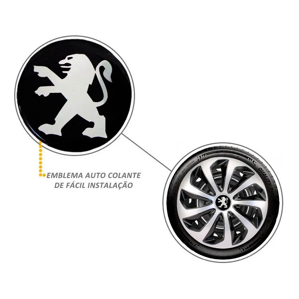 Kit Com 4 Emblema Resinado Calota Peugeot Adesivo 48mm