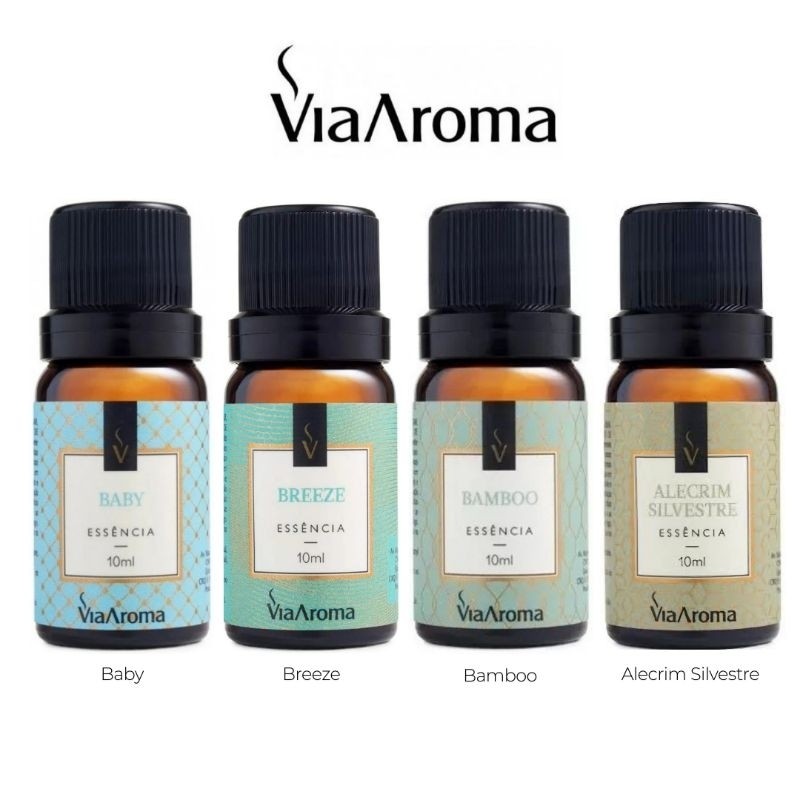 Kit com 4 Essência 10 ML Via Aroma para Aromatizador e Difusor Elétrico de Ambiente