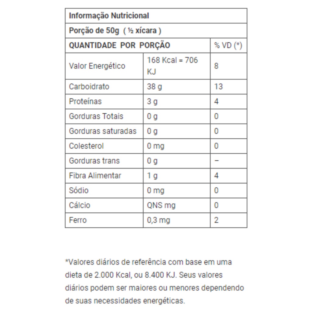 O Flocão de Arroz Nutritiva é fonte de carboidratos e aminoácidos indispensáveis para o organismo, além de ser rico em vitaminas do complexo B. Muito utilizado na preparação de barras de cereais, cereais matinais, granolas, cookies, bolos, cuscuz, mingaus, cremes, entre outros alimentos. Experimente! Ingredientes Flocos de arroz. Alérgicos Não contém glúten.